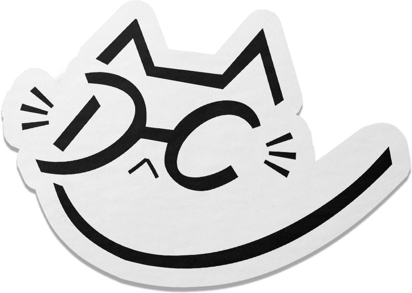We even debated whether the logo mark would be better with or without whiskers. Although I valued simplicity, whiskers were essential for helping audiences recognize the cat icon. Ultimately, I was inspired by a Pinterest image of a simple single line forming a cat's shape with tiny details added on top. I simplified it further, including just the cat's curvature, ears, glasses, and whiskers.